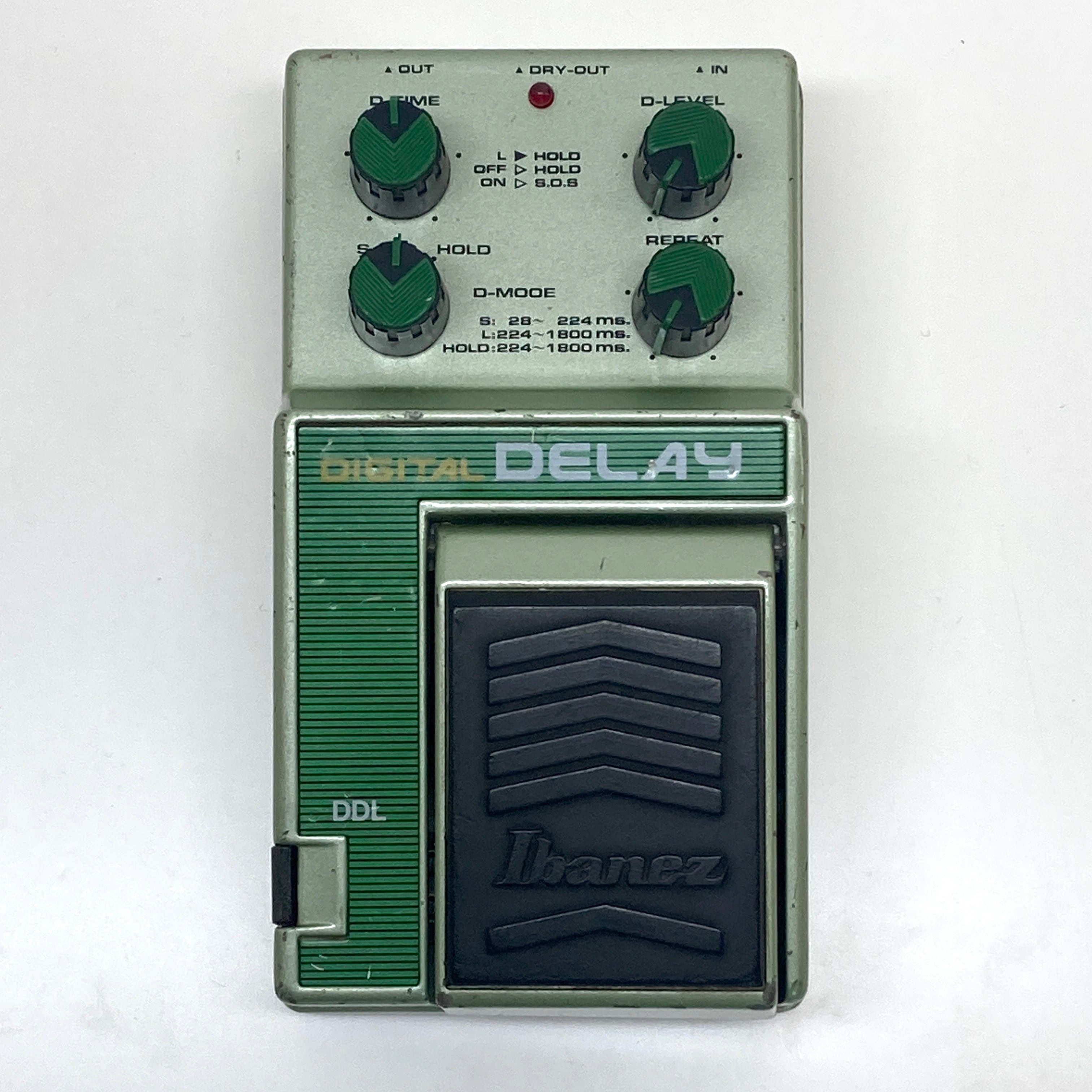 ■商品説明: 初代IBANEZデジタルディレイペダルです。2段階のディレイレンジ切替(Short/Long)とHold機能により、短めのスラップバックから最長約1,800 msのロングディレイまで設定できます。(競合機種だった BOSS DD-2/DD-3 は最長800msでした)Holdモードでは数秒のフレーズループが可能で、即興演奏や実験的なサウンドメイクにも対応します。