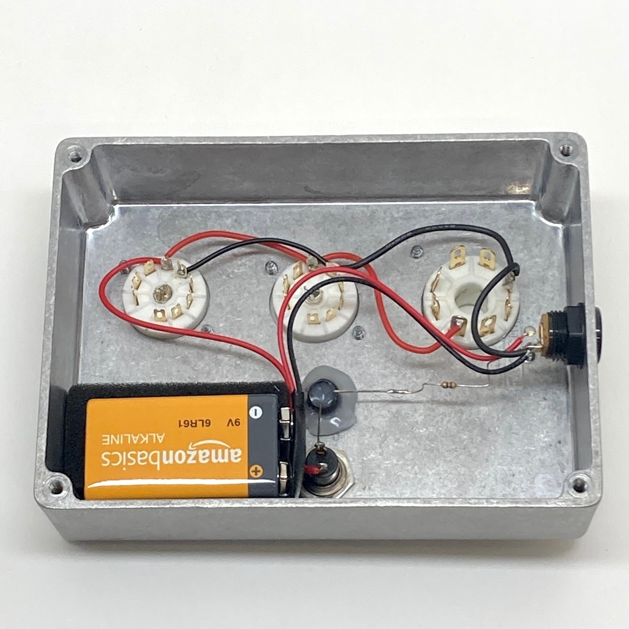 電源:9V電池(内蔵可能)またはDC9Vアダプター入力(センターマイナス仕様)